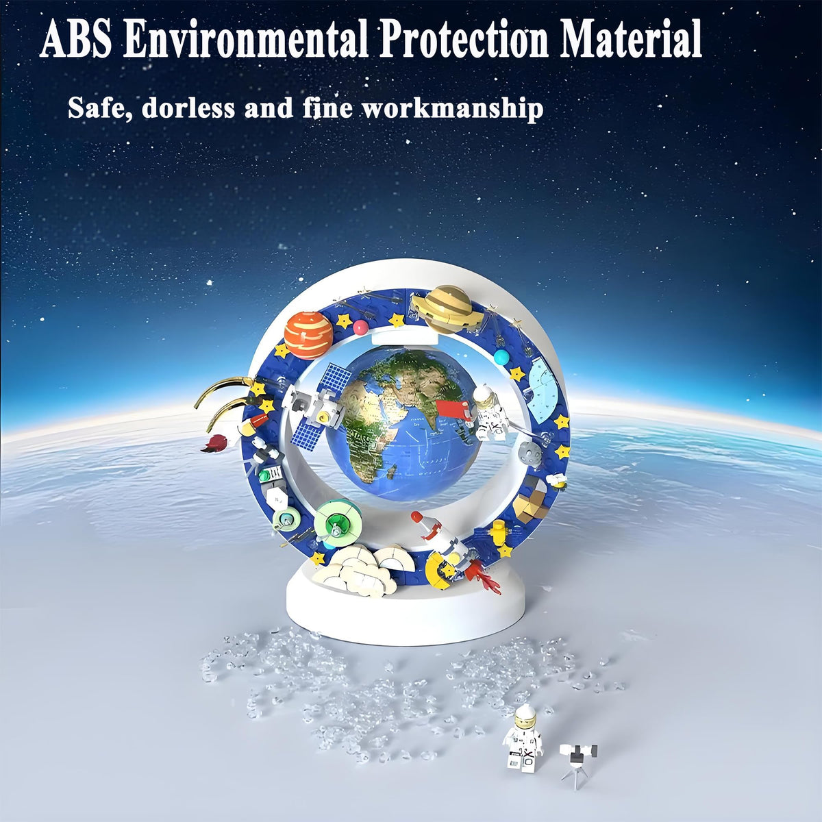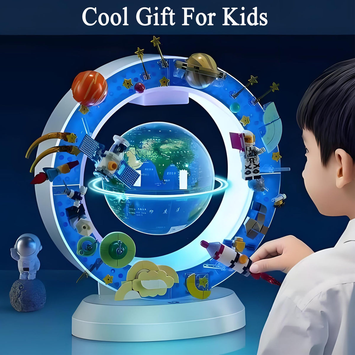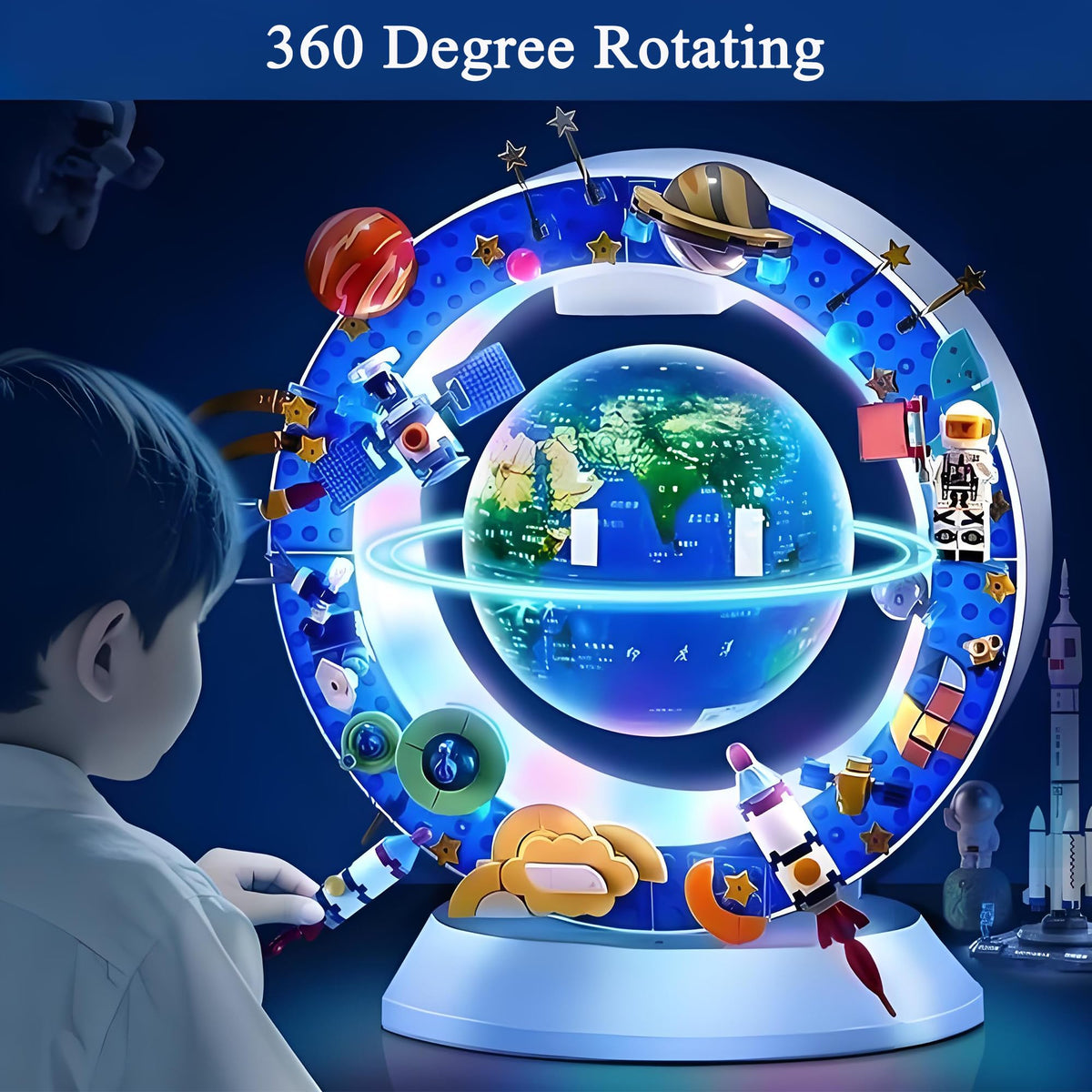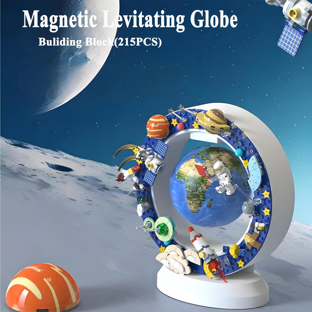 Includes 215 space-themed building blocks to assemble satellites, rockets, and astronauts that orbit around the glowing globe. A perfect DIY experience for ages 6+, encouraging creativity and imagination while building your own cosmic orbit.