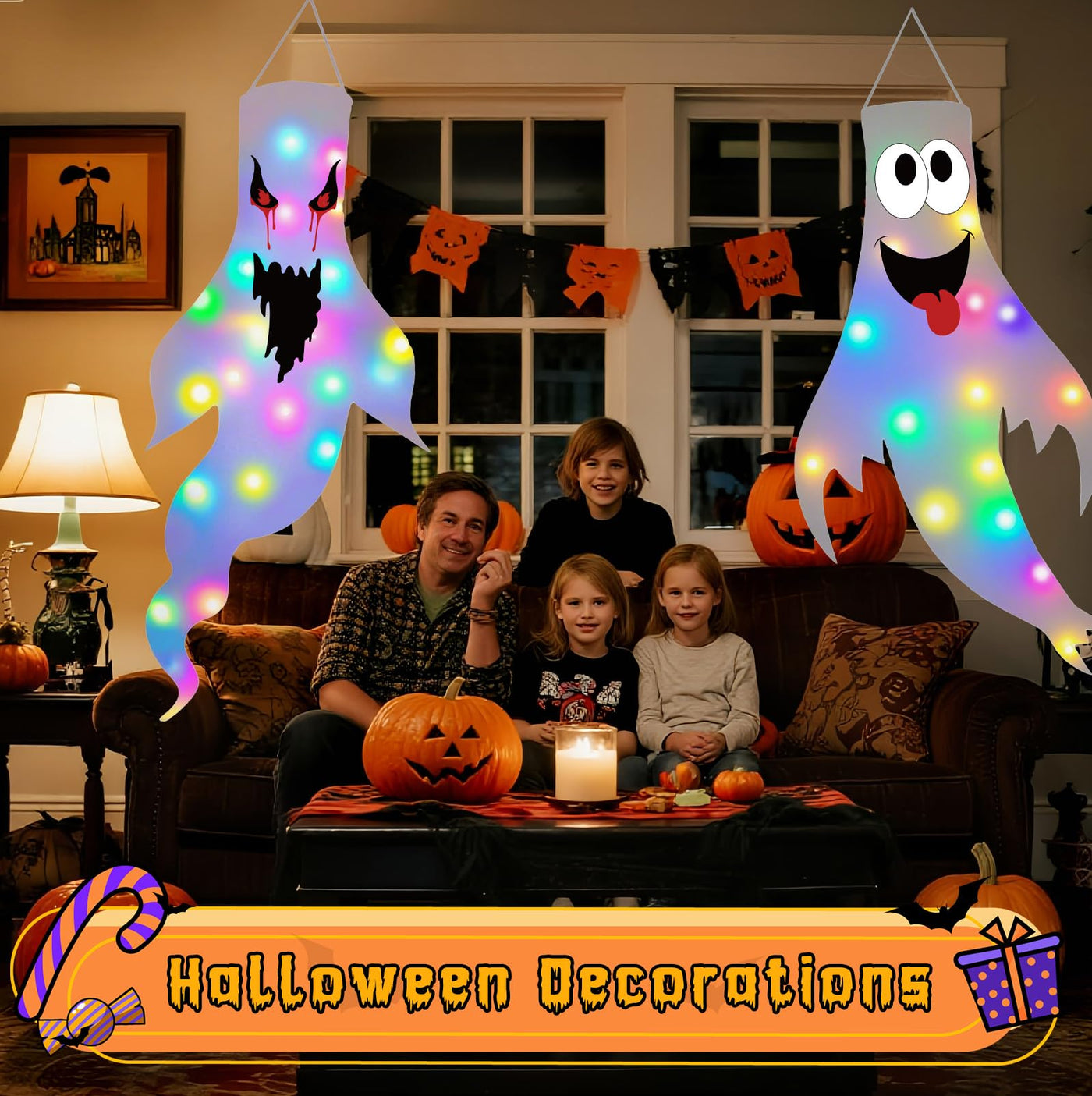 Halloween Decorations Outdoor: Transform your yard into a haunted paradise! These 2 large hanging ghosts outdoor decorations create spooky-fun ambiance for porch ghost displays or Halloween yard decorations outdoor. The light up ghosts captivate trick-or-treaters as floating ghost silhouettes in the dark.