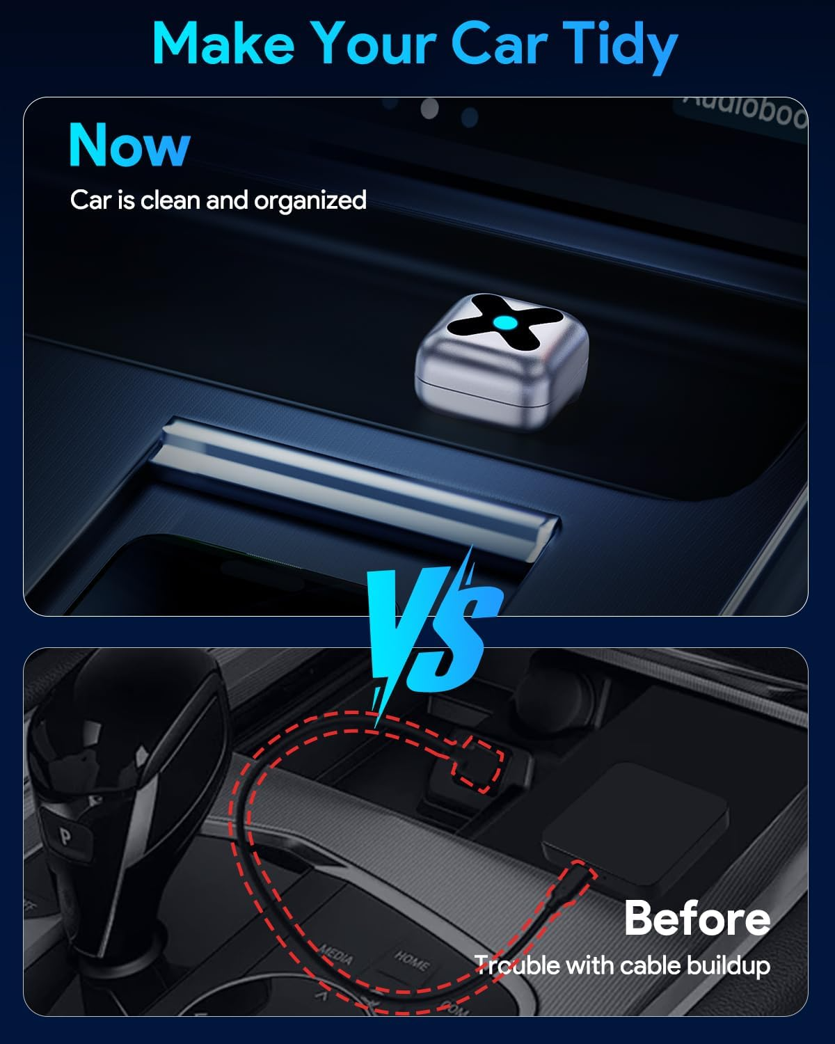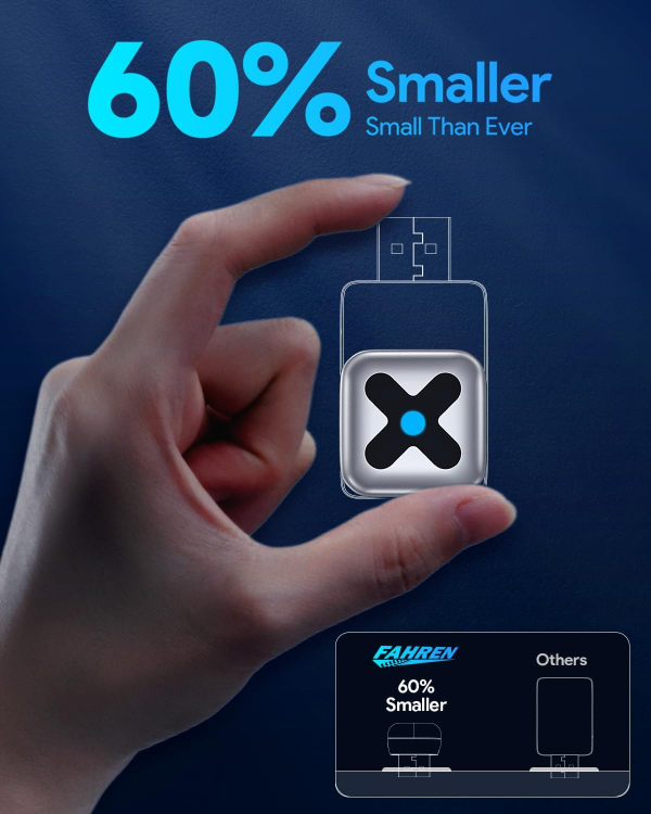 The FAHREN M5 wireless CarPlay adapter is 60% smaller than traditional models—about the size of a USB flash drive. It sits almost flush with your car’s USB port, keeping it discreet yet powerful. Eliminate cable clutter, maintain a tidy dashboard, and enjoy a sleek, refined driving experience with true wireless freedom.