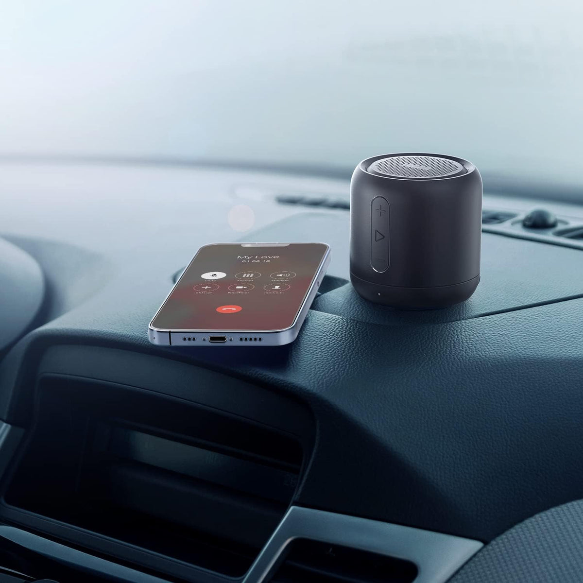 Sound core menthe Mini Bluetooth speaker with superior sound from Anker the choice of 20 million+ happy users industry-leading technology compact and powerful super-portable Bluetooth speaker with incredible sound quality A 5W audio driver and passive subwoofer ensure you get crystal-clear sound and powerful bass from a speaker you can literally take anywhere Bluetooth 4 0 seamlessly connects to any Bluetooth device A 66ft transmission range and a noise-cancelling microphone enable hands-free calling unstoppable music sound core Mini boasts Micro SD support aux-in jack and an FM radio—so even if your phone stops your music keeps going listen longer sound core Mini supplies you with 15 hours of continuous playtime more than double that of similar-sized speakers so you can listen for longer